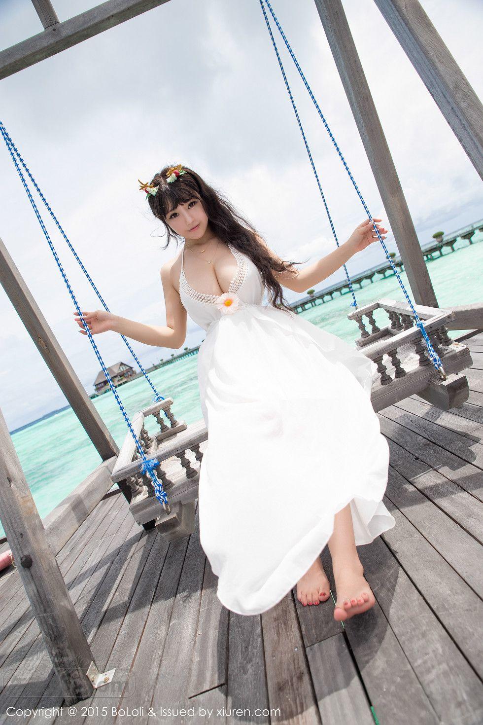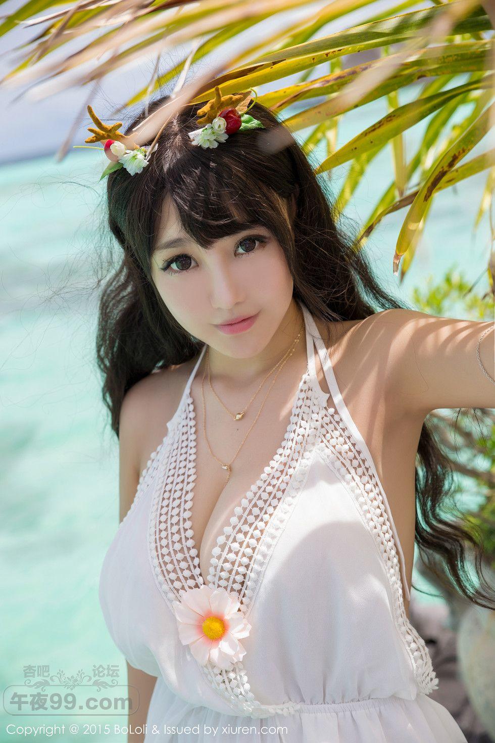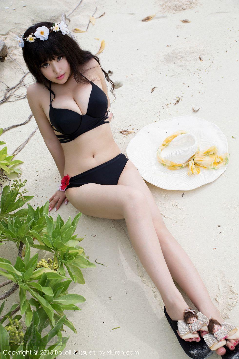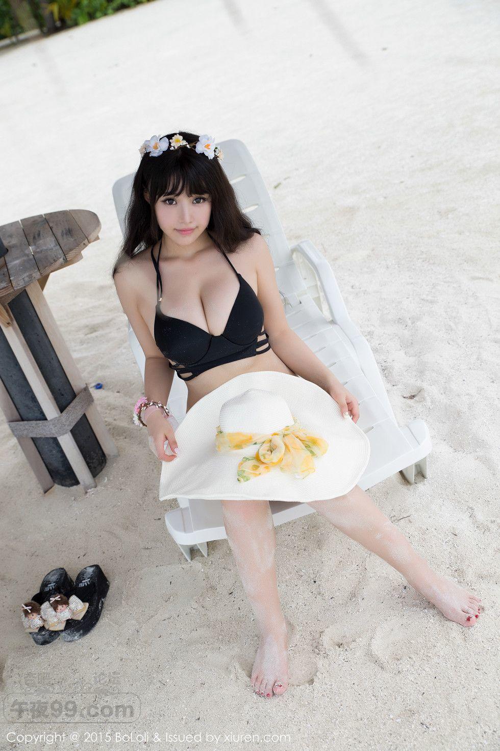 [美腿翘臀] 嫩模Barbie可儿马尔代夫旅拍黑色内衣秀童颜巨乳写真【46P】 |